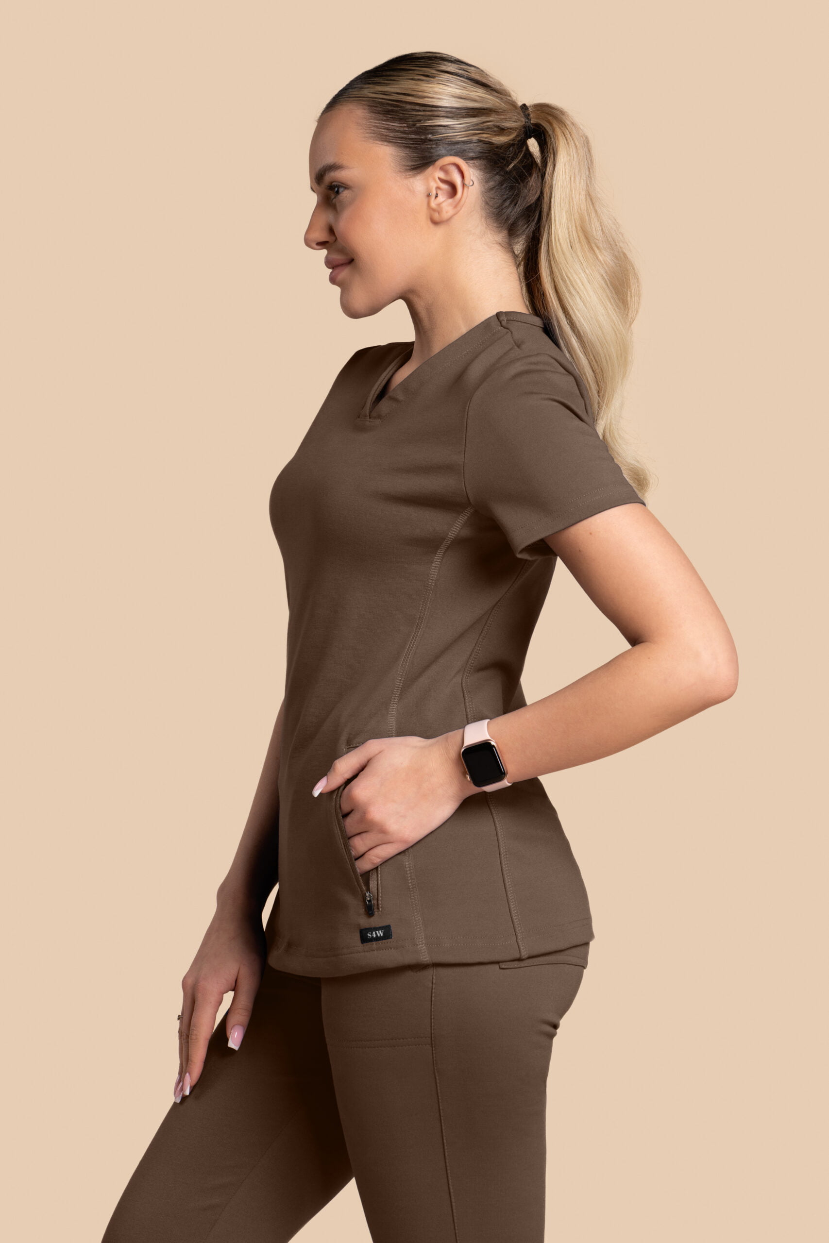 Bluza medyczna damska – Scrubs Twozip brązowa
