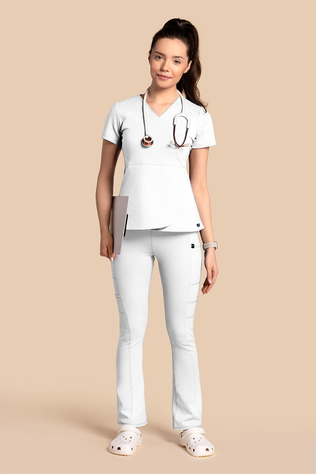 Komplet medyczny damski – Scrubs Tulip + Yoga Pants biały