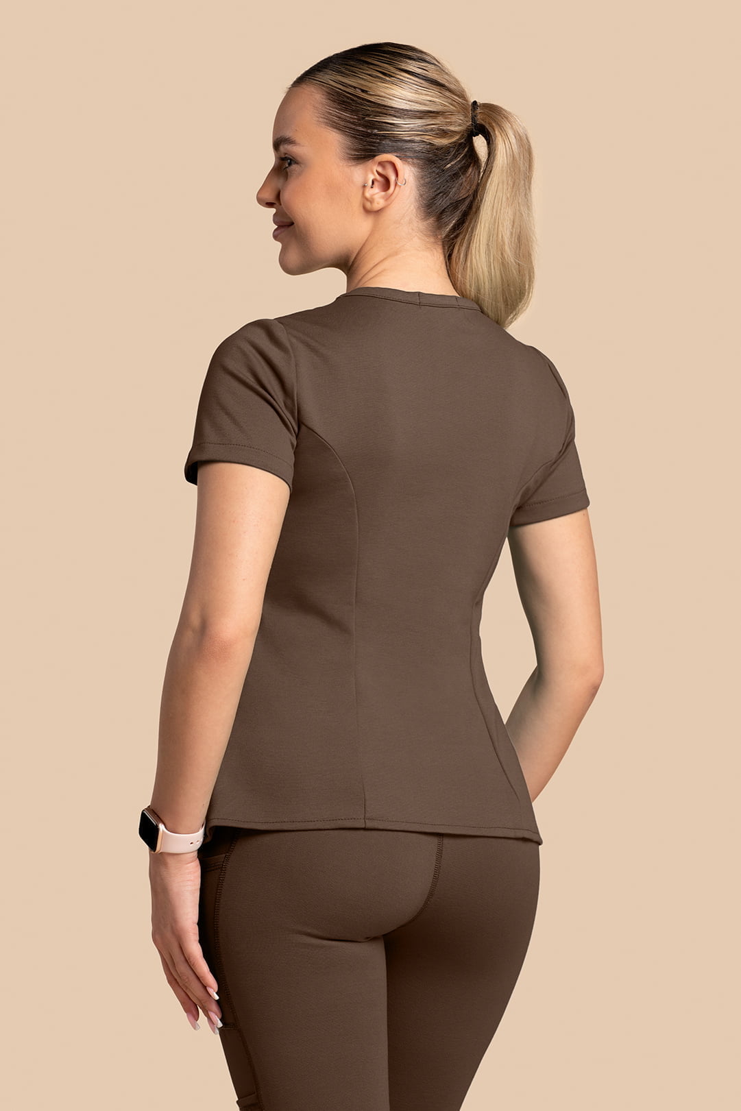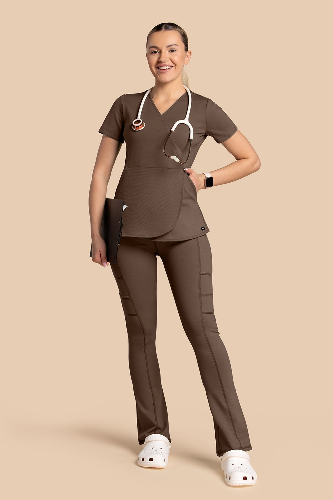 Komplet medyczny damski – Scrubs Tulip + Yoga Pants brązowy